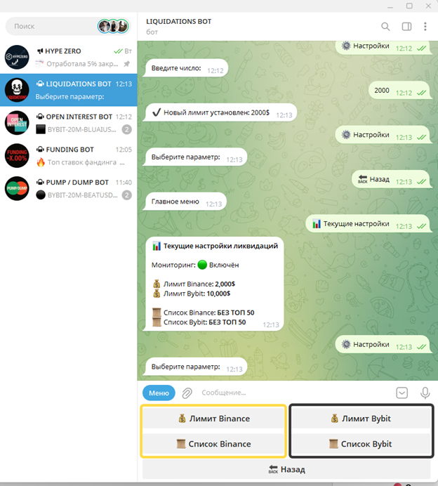 Настройки скринера ликвидаций¶