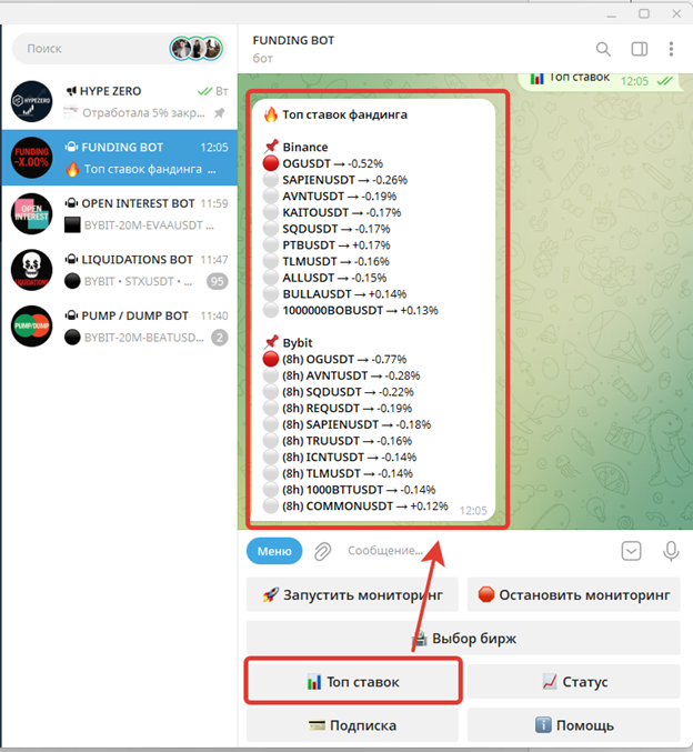Команда Топ ставок присылает по 10 инструментов на каждую биржу по аномальному фандингу.