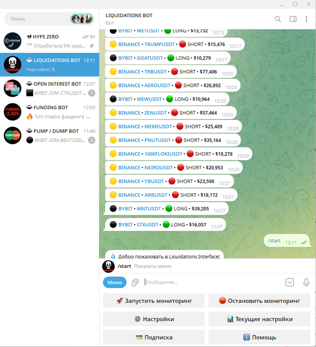 - 🛑 Остановить мониторинг — выключает отправку сообщений от бота